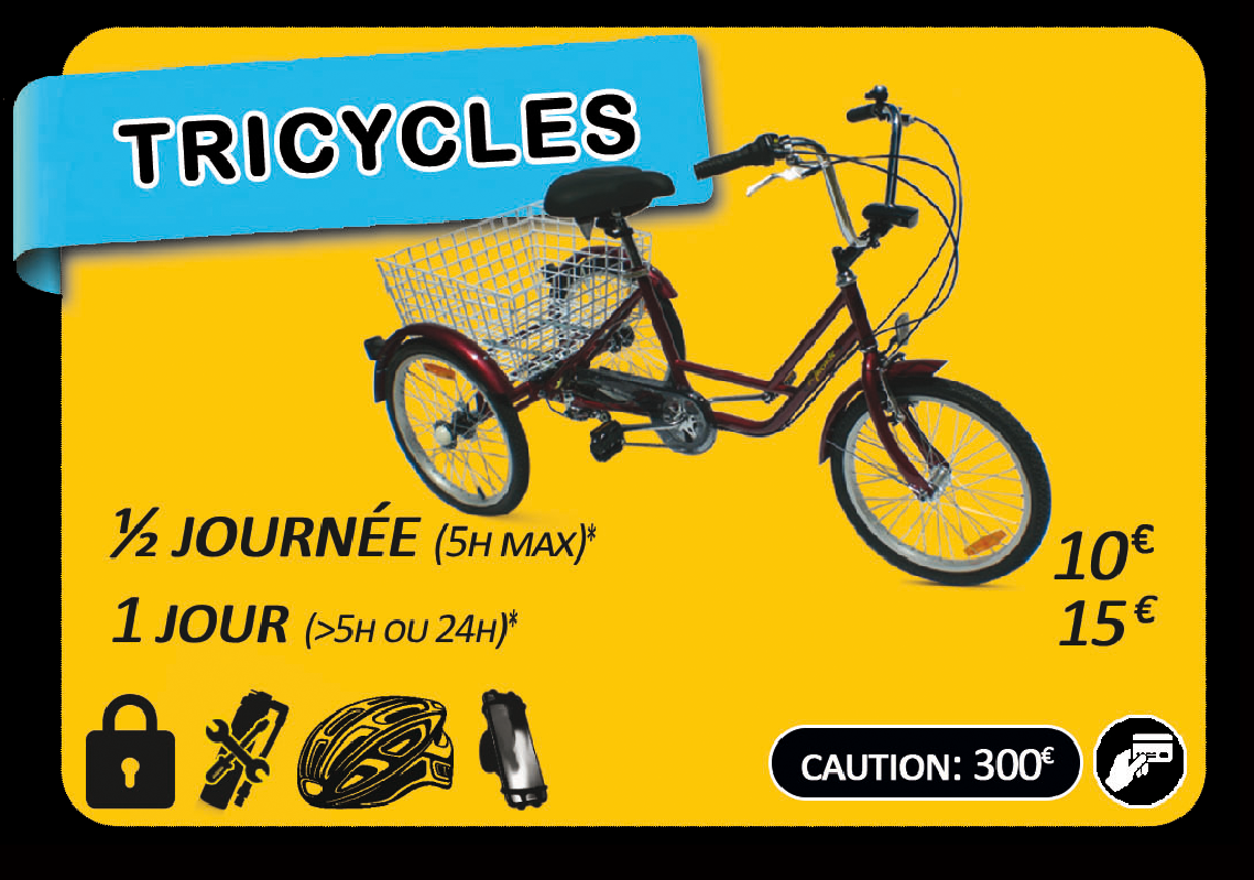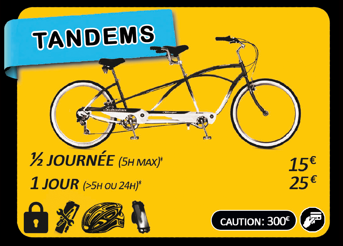 tandems, tricycles, Rosalies (voitures à pédales)...- Ainsi que la Location d'équipements: