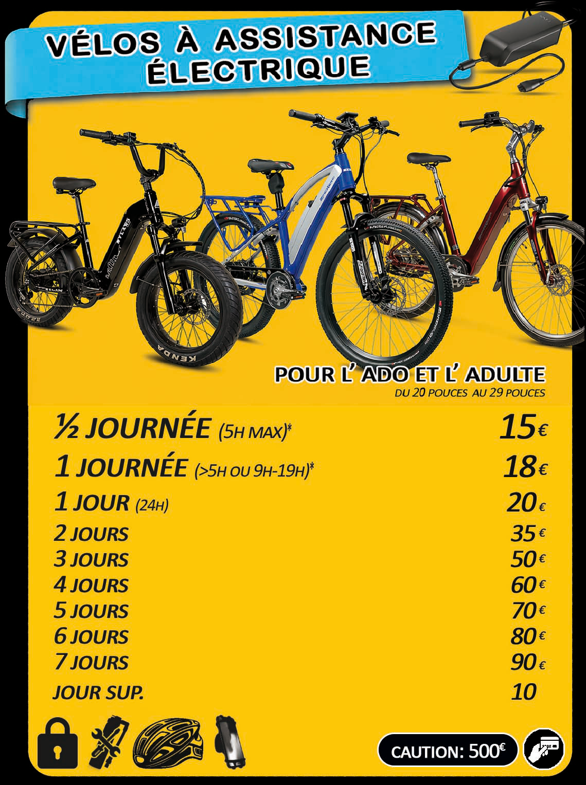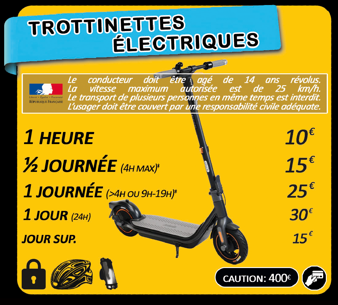 La caution éxigée pour la location des engins motorisés, électriques et thermiques, est effectuée par carte bancaire.